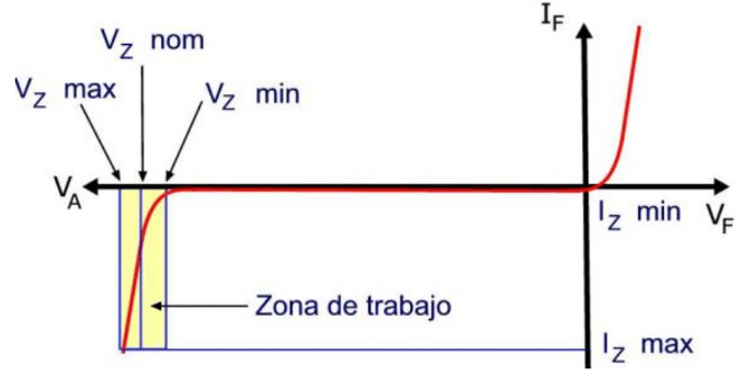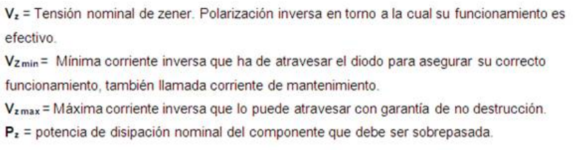 1. VZ nom, VZ : Tensión nominal del zener (tensión en cuyo entorno trabaja adecuadamente el zener).