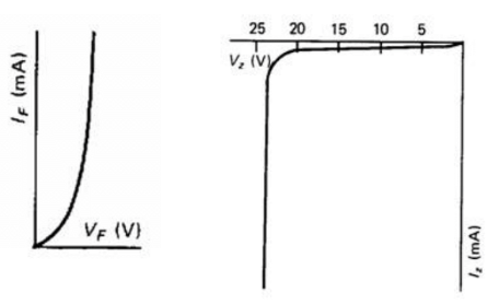 Cuando el diodo esta en polarización directa se comporta como un diodo rectificador, pero cuando el diodo esta polarizado inversamente, una pequeña corriente circula por él, llamada corriente de saturación IS, esta corriente permanece relativamente constante mientras aumentamos la tensión inversa hasta que el valor de ésta alcanza VZ, llamada tensión Zener (que no es la tensión de ruptura zener), para la cual el diodo entra en la región de colapso. La corriente empieza a incrementarse rápidamente por el efecto avalancha. En esta región pequeños cambios de tensión producen grandes cambios de corriente. El diodo zener mantiene la tensión prácticamente constante entre sus extremos para un amplio rango de corriente inversa.